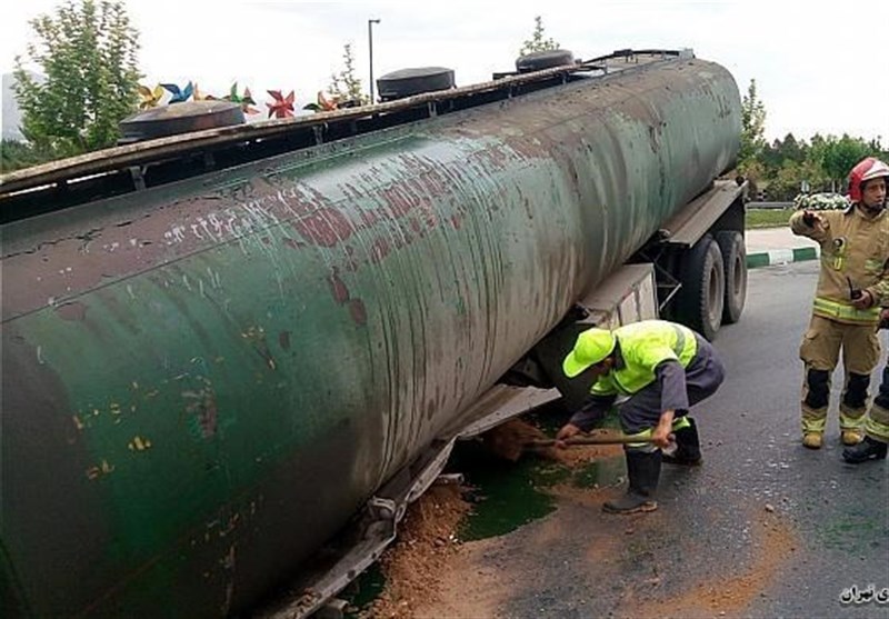 تانکر حمل سوخت در حالی در ساوه واژگون شده که تانکر حاوی مواد نفتی با قابلیت فوق‌العاده اشتعال و انفجار است.