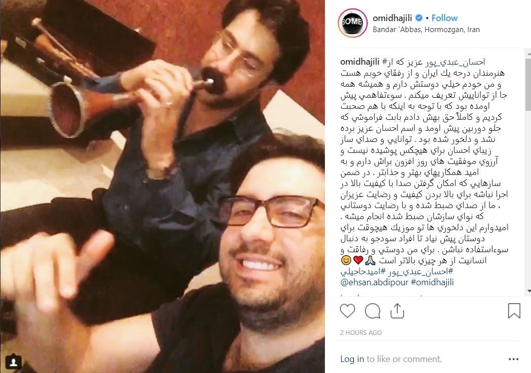 پس از اعتراضهای احسان عبدیپور، امیدحاجیلی در پُستی دز صفحه شخصیاش از عبدیپور بابت فراموشی در بیان اسمش عذرخواهی کرد اما هرگز نگفت که چرا نوازنده دیگری را به جای احسان عبدیپور به روی صحنه برده است و او را به عنوان نوازنده سُرنا معرفی کرده است.