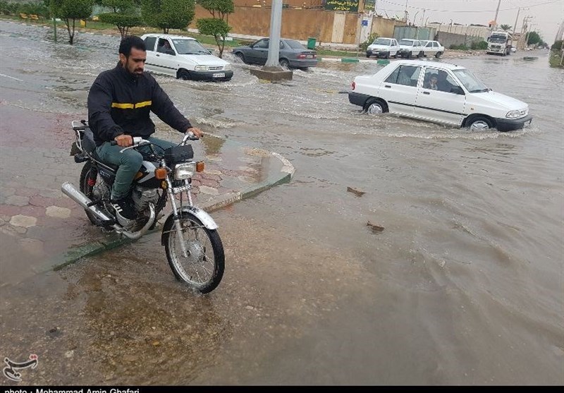 آبگرفتگی معابر شهری اهواز در پی بارش باران + فیلم