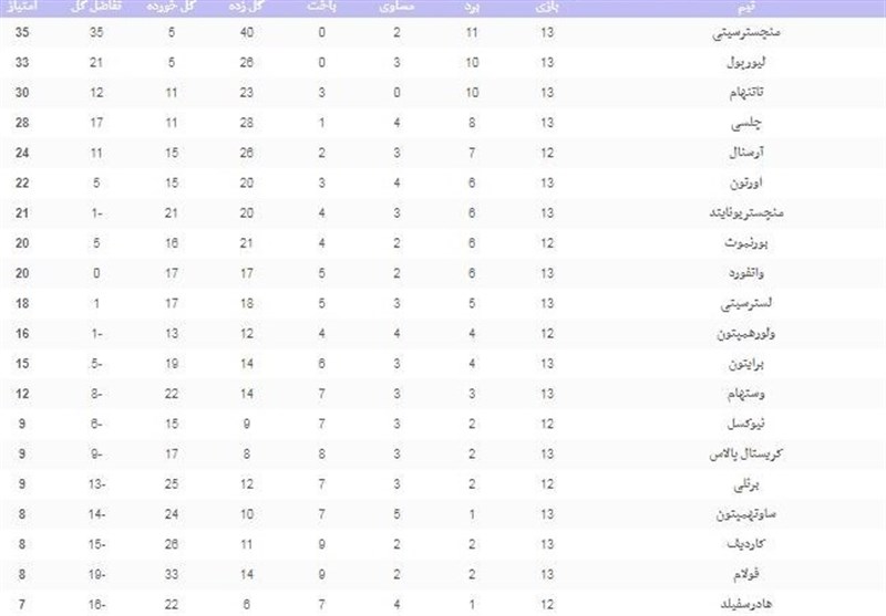 جدول ردهبندی لیگ برتر انگلیس را در زیر مشاهده کنید.