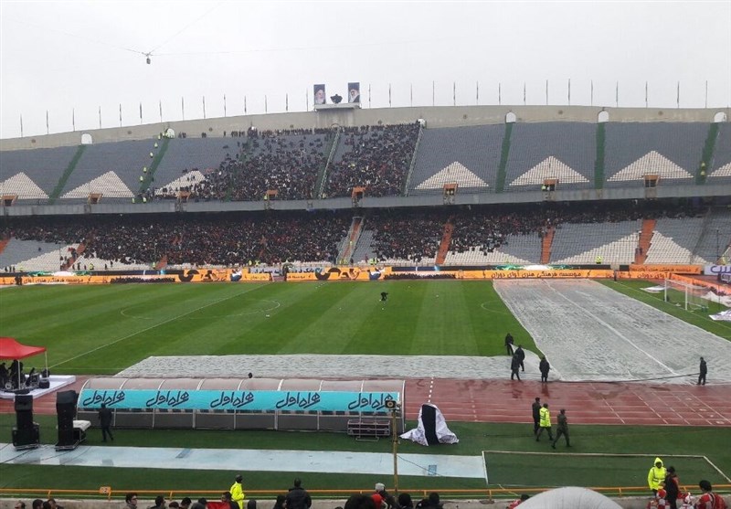 * بازیکنان دو تیم در هنگام ورود به زمین برای گرم کردن به شدت مورد تشویق قرار گرفتند.