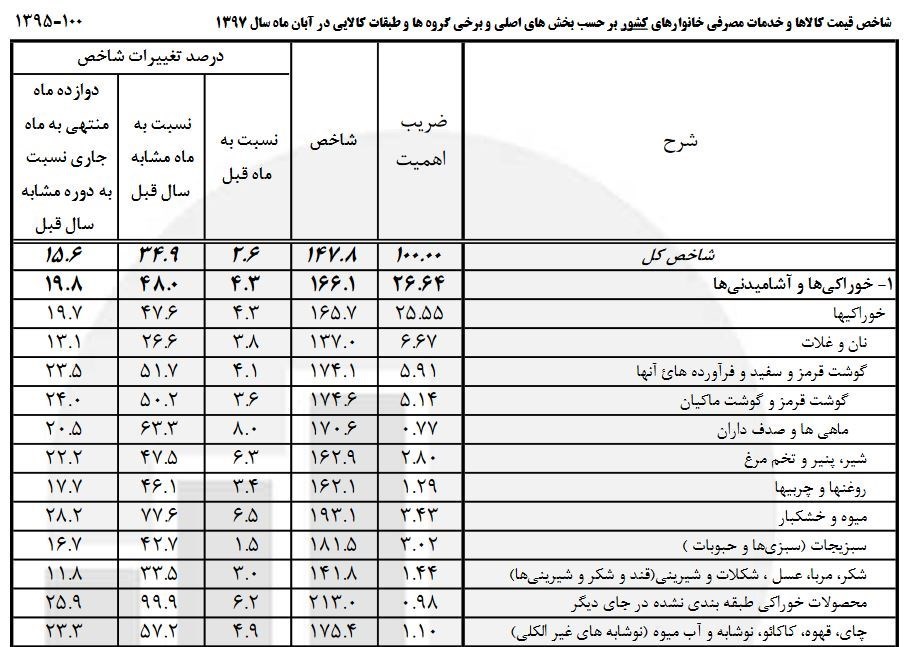 جدول تورم اقلام خوراکی را در ادامه ببینید: