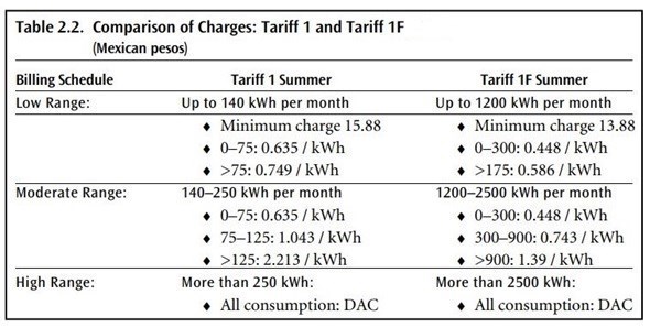 بحران برق در سال جاری، همه بخشهای کشور و به خصوص بخشهای تولیدی را تحت تاثیر قرار داد و قطعا یکی از راهکارهای مهم برای مقابله با بحران برق، افزایش تعرفه برق مشترکین پرمصرف بود که متاسفانه از آن غفلت شد. افزایش یکسان برق در کشور در حالی طی این سالها انجام شد که دیگر کشورهای دنیا برای مقابله با بحران برق راههای منطقیتری را اتخاذ نمودهاند. به عنوان مثال در کشور مکزیک برای جلوگیری از بحران انرژی در سال 2002، قیمت برق مشترکین کم مصرف(75% از مشترکین) ثابت اما تعرفه برق دیگر مشترکین افزایش یافت تا جایی که قیمت برق 5% از مشترکین به قیمت واقعی رسید. این سیاست هوشمندانه موجب شد تا همه مشترکین پرمصرف نسبت به کاهش مصرف برق اقدام نموده و با تغییر رفتار در مصرف برق، درصد مشترکین پرمصرف از 5% به 2% برسد. شکل زیر جدول تعرفههای برق مکزیک را در این سال نشان میدهد.