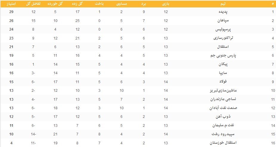 نتایج دیدارهای امروز (پنجشنبه) هفته چهاردهم لیگ برتر به شرح زیر است: