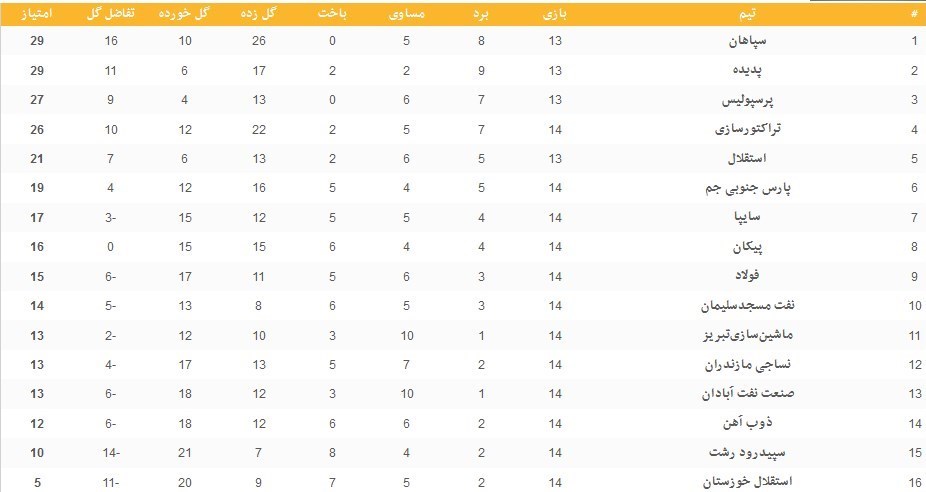 جدول ردهبندی لیگ برتر فوتبال به شرح زیر است: