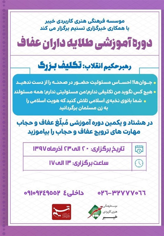 برگزاری دوره آموزشی مبلغان عفاف در خبرگزاری تسنیم