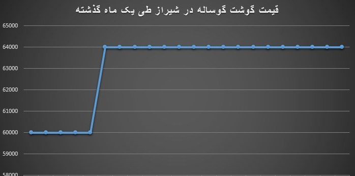 براساس نرخنامه مصوب اتحادیه حداکثر قیمت خردهفروشی هر کیلوگرم گوشت ران و سردست گوسفندی با استخوان (بدون دمبه و دم سینه) در تاریخ 14 آبانماه 60 هزار تومان بوده که این قیمت در تاریخ 13 آذرماه به 70 هزار تومان رسیده است که افزایش 16.6 درصدی را طی یک ماه نشان میدهد.