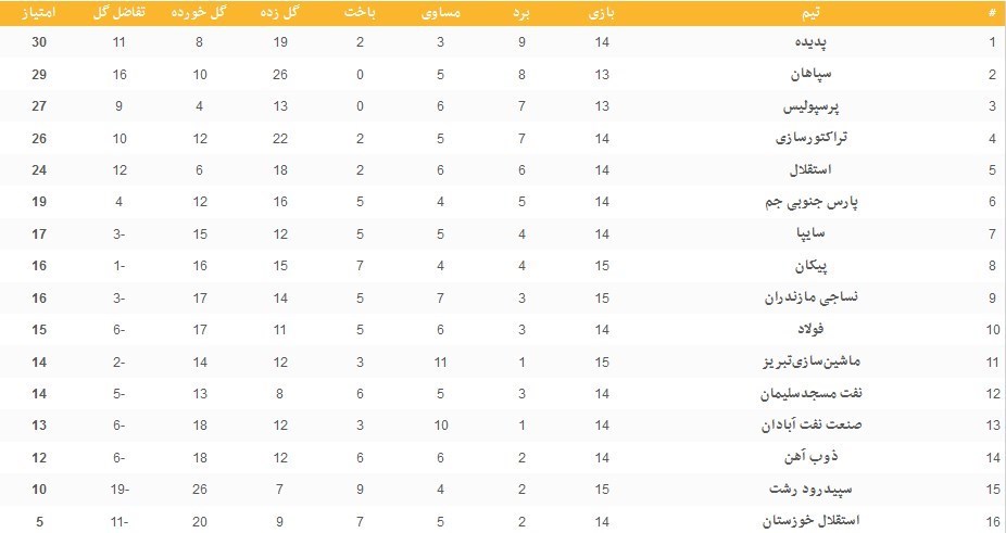تیم فوتبال استقلال با کسب برتری 5 بر صفر در خانه سپیدرود رشت، با 24 امتیاز در جایگاه پنجم جدول باقی ماند. آبیهای پایتخت امیدوارند با شکست پدیده در بازی معوقه خود و نیز توقف تراکتورسازی مقابل فولاد، نیمفصل اول لیگ برتر را در جایگاه چهارم جدول به پایان برسانند. سپیدرود هم با 10 امتیاز و تفاضل گل 19-، در رتبه پانزدهم جدول باقی ماند.