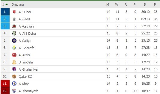 در جدول رده‌بندی 12 تیمی لیگ ستارگان قطر تیم الشحانیه با 16 امتیاز نهم است و السد 35 امتیازی رتبه دوم را در اختیار دارد.