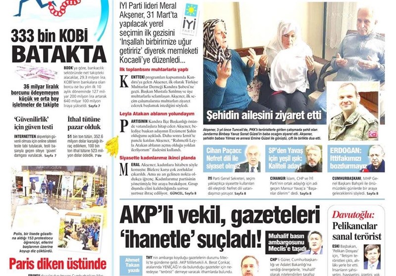 نماینده آکپارتی روزنامه‌ها را به خیانت متهم کرد