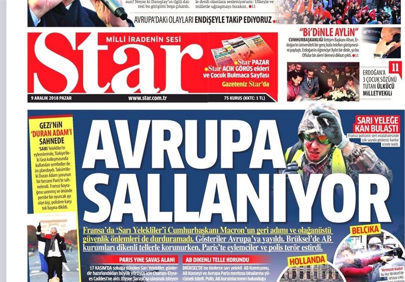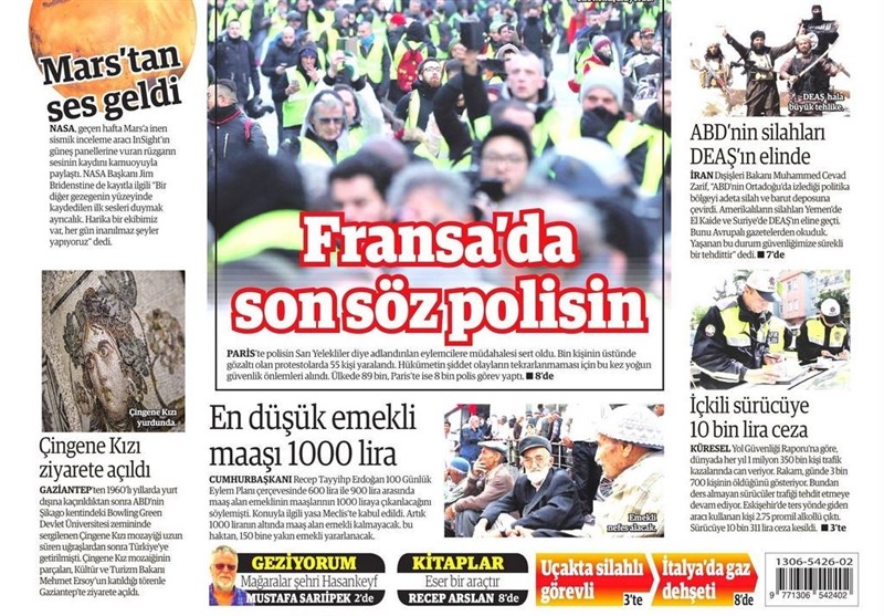 به گزارش گروه بینالملل خبرگزاری تسنیم ، بسیاری از روزنامههای ترکیه، امروز در عکس و تیتر صفحه نخست، گسترده شدن نا آرامیهای فرانسه جمهور را برجسته کردهاند. همچنین این روزنامهها موضوعات دیگری مانند سخنان اردوغان در مورد مداخله قضات و دادستانها در مساله حجاب را مورد توجه قرار دادهاند.