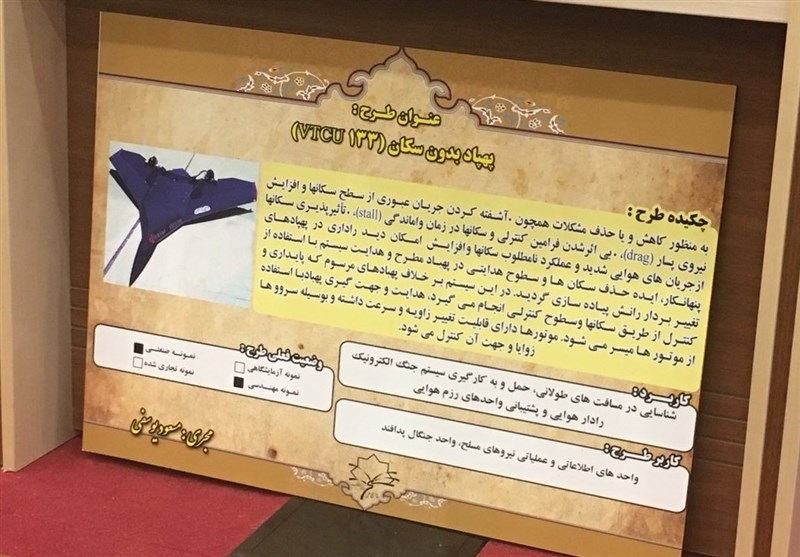 این طرح‌ها عبارتند از طراحی پهپاد بدون سکان vtcu133 که در آن برخلاف سایر پهپاد ها که برای هدایت آنها از سکان‌ها و سطوح کنترلی استفاده می‌شود؛ هدایت و جهت گیری پهپاد با استفاده از تغییر زاویه در خروجی موتورها صورت می گیرد. این پهپاد در ماموریت های شناسایی و رزمی کاربرد دارد.