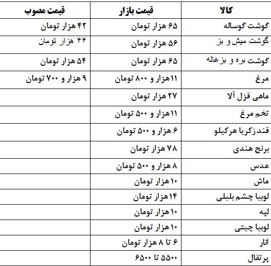 قیمت انواع میوه، مواد پروتئینی و حبوبات در یاسوج؛ یکشنبه 18 آذرماه + جدول