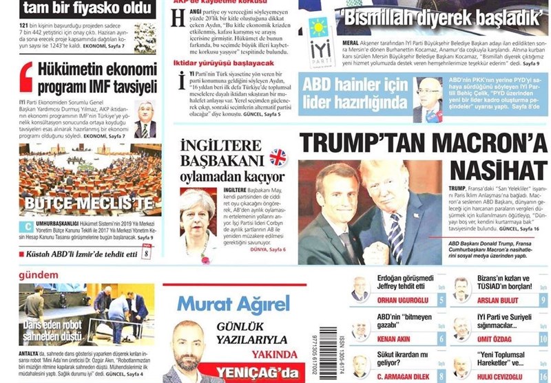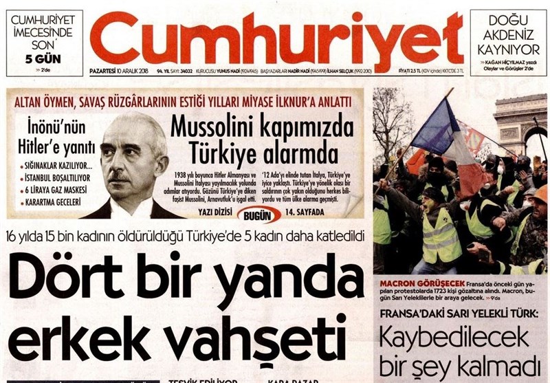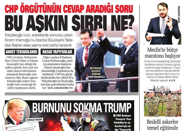به گزارش گروه بینالملل خبرگزرای تسنیم، بسیاری از روزنامههای ترکیه، امروز در عکس و تیتر صفحه نخست، وضعیت رقابت و ائتلاف احزاب برای انتخابات پیش رو را برجسته کردهاند. همچنین این روزنامهها موضوعات دیگری مانند اعتراضات فرانسه را مورد توجه قرار دادهاند.