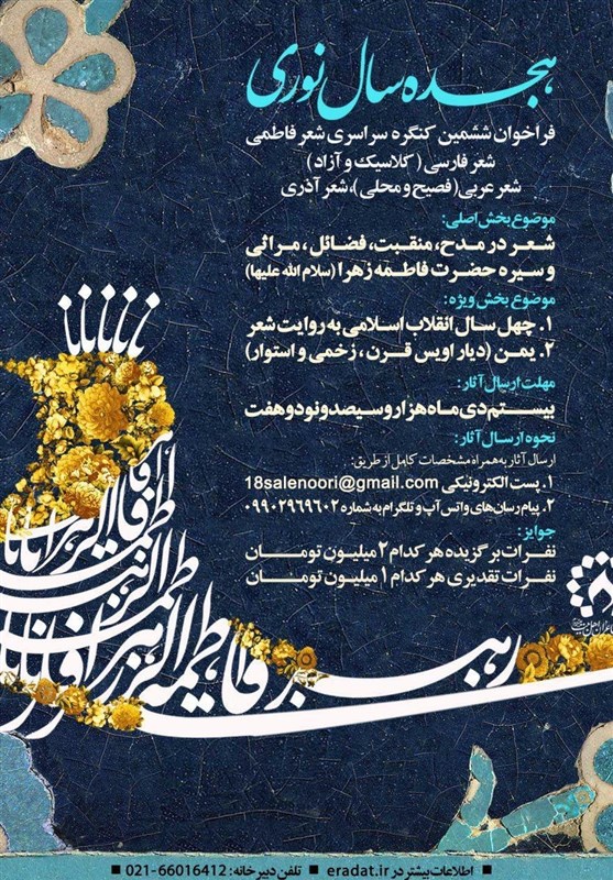 در این فراخوان از کلیه شاعران پیشکسوت و جوان در سراسر کشور دعوت شده است با ارسال حداکثر پنج قطعه از آثار برتر خود در این کنگره شرکت کنند.