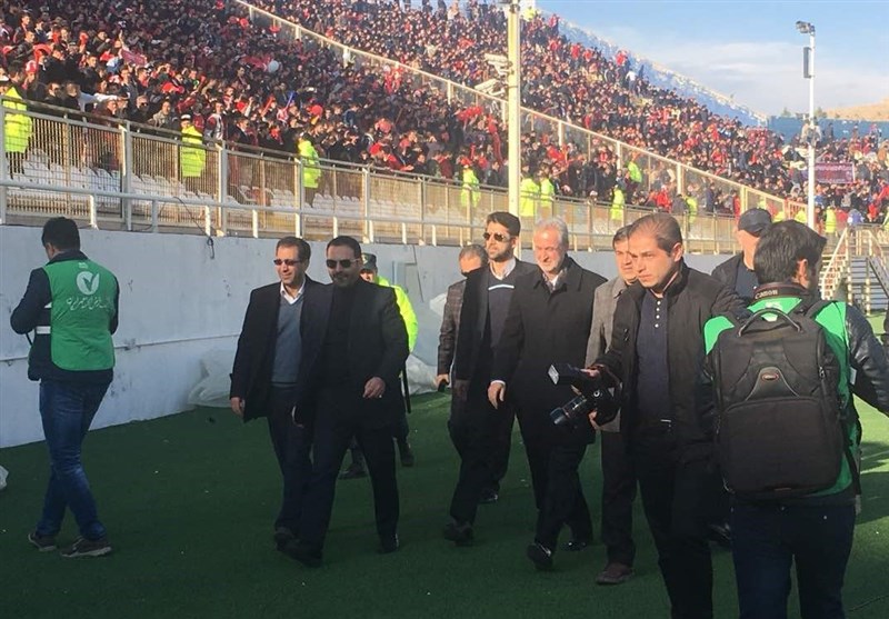 محمدرضا پورمحمدی استاندار آذربایجان شرقی به همراه ایوب بهتاج مدیرکل ورزش و جوانان این استان در ورزشگاه یادگار امام (ره) تبریز حضور پیدا کرده و مورد تشویق هواداران تراکتورسازی قرار گرفتند.