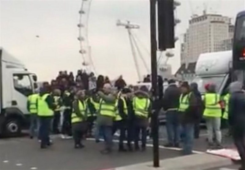 طرفداران برگزیت با الگوبرداری از تظاهرات فرانسه، جلیقه های زرد به تن کرده و با تجمع بر روی پل وست مینستر در لندن، ترافیک را مختل کردند.