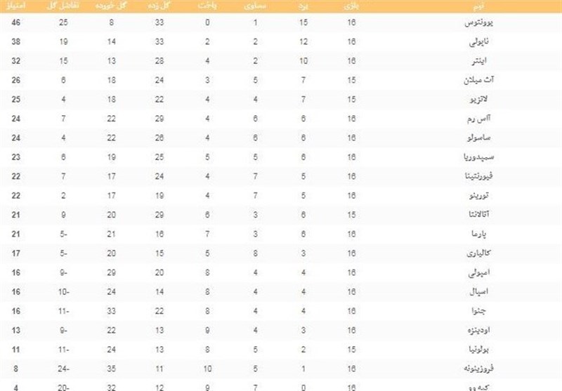 جدول ردهبندی سری A را در زیر مشاهده کنید.