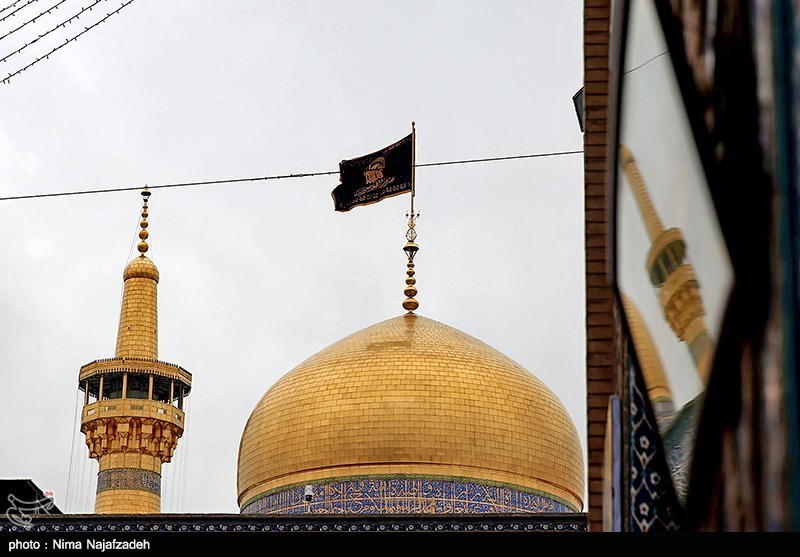 صحن و سرای حرم ثامن الائمه(ع) در شب وفات حضرت فاطمه معصومه(س) یکپارچه سیاه پوش و قبل از غروب آفتاب نیز پرچم سیاه بر فراز گنبد برافراشته شد.