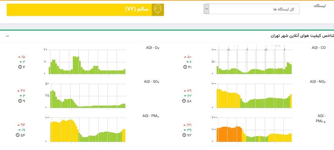 شاخص آنلاین میزان آلودگی هوای تهران