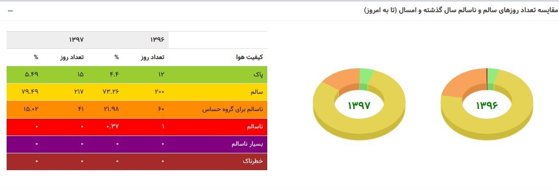 مقایسه تعداد روزهای سالم و ناسالم سال گذشته و امسال (تا به امروز)