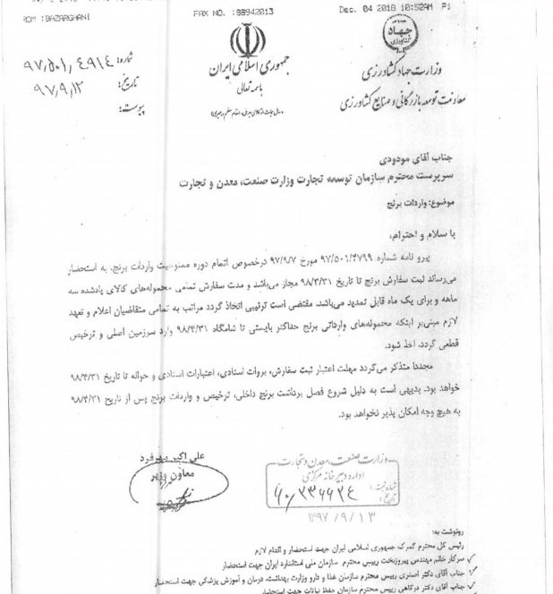 در این نامه آمده است که متقاضیان تا 31 خرداد سال آینده با سه ماه مهلت واردات و یک ماه قابلیت تمدید  میتوانند این محصول را برای جبران کسری تولید به کشور وارد کنند و در فصل برداشت محصول داخلی امکان واردات این محصول وجود ندارد.