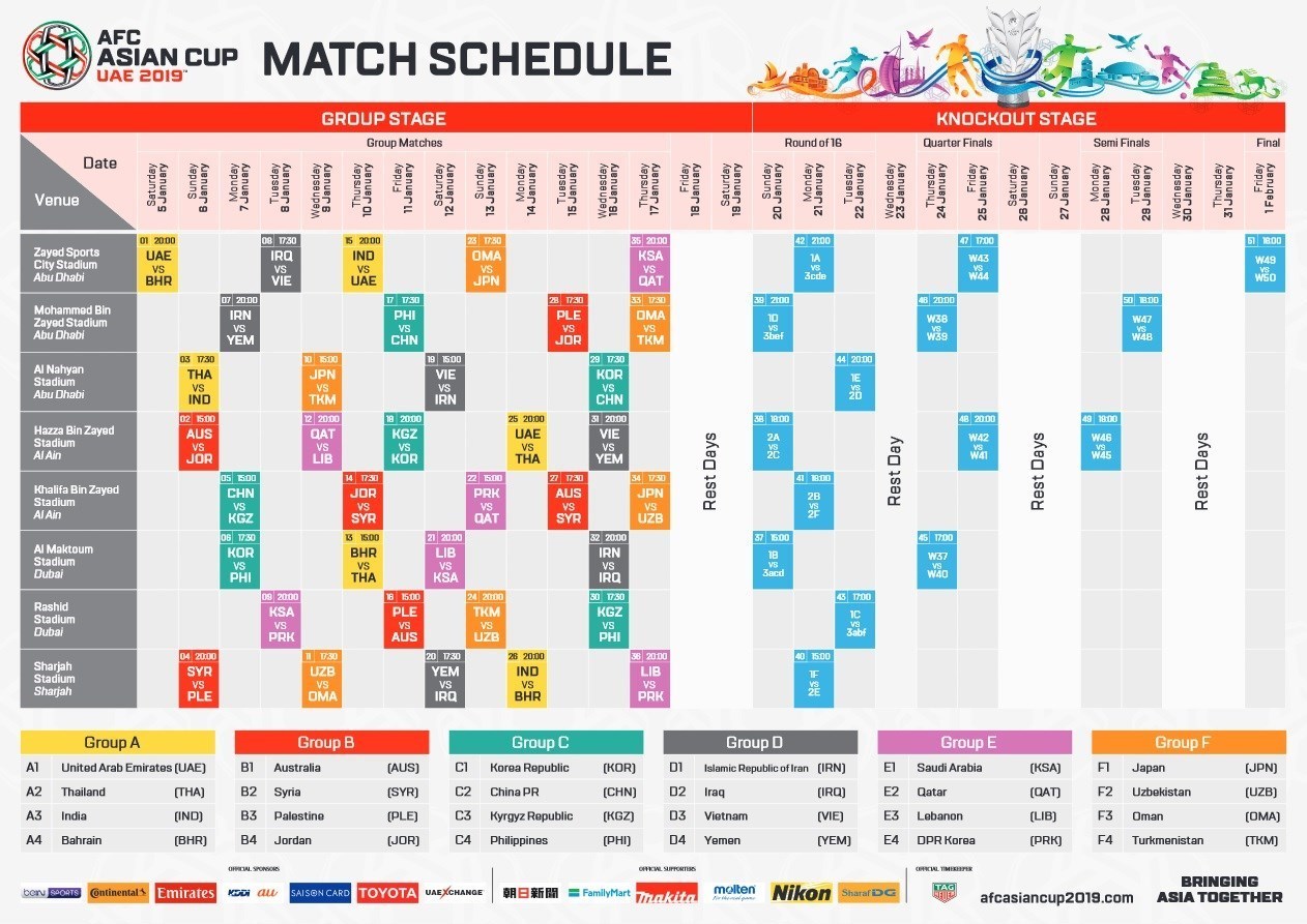 حالا نقشه راه تیم ملی فوتبال ایران برای صعود به نیمه نهایی جام ملتهای آسیا را بررسی میکنیم که البته پیشاپیش بگوییم که تمام احتمالات روی کاغذ است. با این حال در صورتی که تیم ملی به عنوان صدرنشین گروه D صعود کند، در مرحله یک هشتم نهایی با تیم سوم برتر یکی از گروههای B یا E یا F روبهرو خواهد شد که در گروه B اگر استرالیا به عنوان صدرنشین به دور بعدی صعود کند، احتمال دوم و سوم شدن هر کدام از تیمهای سوریه، فلسطین یا اردن در این گروه وجود دارد. در گروه E عربستان و قطر برای صدرنشینی تقابل دارند که در این صورت باید منتظر سومی لبنان یا کرهشمالی باشیم. در گروه F هم ژاپن و ازبکستان جدیترین رقبا برای یکدیگرند که برای صعود به عنوان تیم اول یا دوم تلاش میکنند و احتمالاً یکی از تیمهای عمان یا ترکمنستان میتوانند برای سومی رقابت داشته باشند.