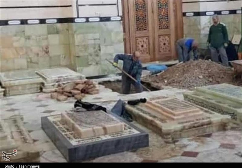 محل خاکسپاری آیت‌الله هاشمی شاهرودی در حرم مطهر حضرت معصومه(س) در حال آماده‌سازی است.