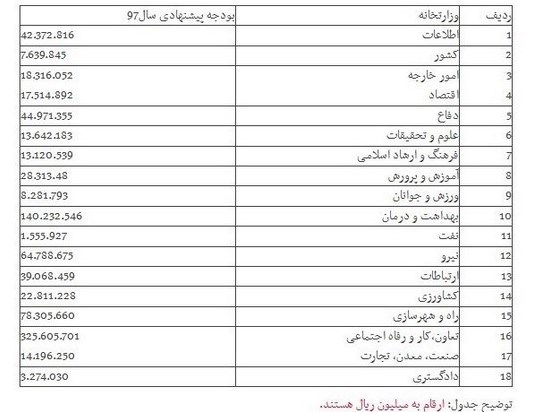 ردیف وزارتخانه  بودجه پیشنهادی در سال 98