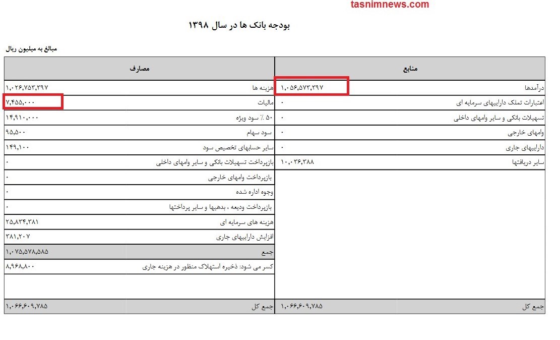 بررسی جداول لایحه بودجه نشان میدهد، در حالی پیش بینی وصول 745 میلیارد تومان از بانکها شده است که هزینه بانکها حدود 100 هزار میلیارد توان لحاظ شده است.