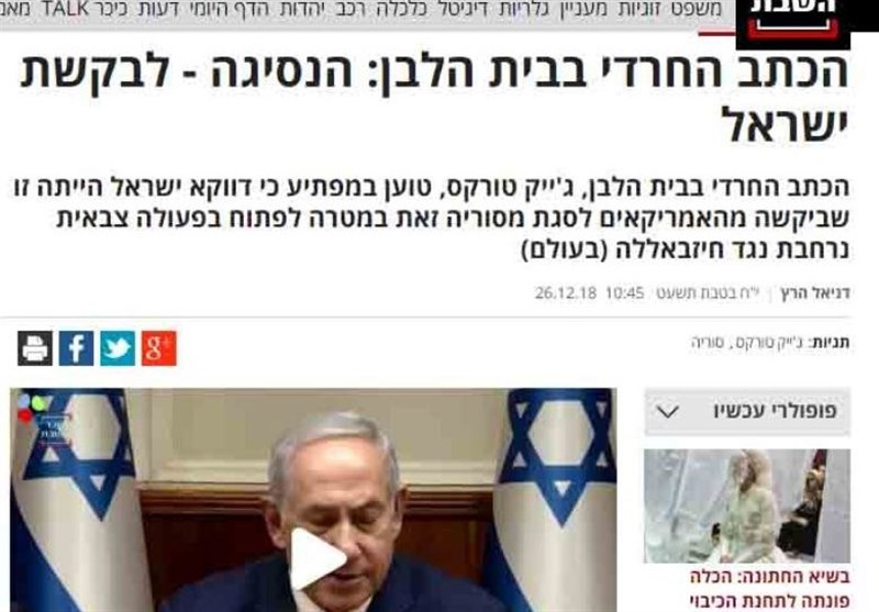 این خبرنگار به نقل از منابعی در کاخ سفید فاش کرد عقب نشینی آمریکا از سوریه بنا به درخواست اسرائیل انجام می شود، زیرا تل آویو نقشه هایی برای انجام تهاجم علیه حزب الله در زمستان داشته و نمی خواهد نیروهای آمریکایی در این درگیری دچار مشکل شوند .