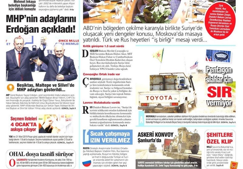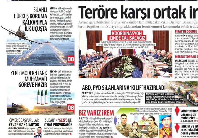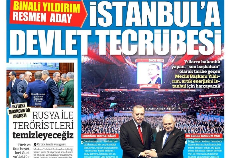 به گزارش گروه بینالملل خبرگزاری تسنیم ، بسیاری از روزنامههای ترکیه، امروز در عکس و تیتر صفحه نخست، معرفی نامزدهای آکپارتی در استانبول را برجسته کردهاند. همچنین این روزنامهها موضوعات دیگری مانند نشست هیاتهای روسیه و ترکیه در مورد سوریه را مورد توجه قرار دادهاند.