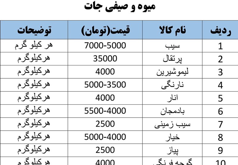 قیمت انواع میوه و تره‌بار و مواد پروتئینی در کرمانشاه؛ سه‌شنبه 11 دی‌ماه + جدول