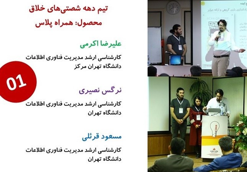 این گزارش می افزاید مرتضی تبریزی مدیر امور فناوری اطلاعات، هادی سپانلو مدیر امور طرح و برنامه، علی رضا جلالی فراهانی رییس مرکز تحقیقات و تحول استراتژیک بانک ملت و کیماسی، شاه حسینی و امین اعضای هیات علمی دانشگاه تهران تیم داوری این مسابقه را تشکیل می دادند.