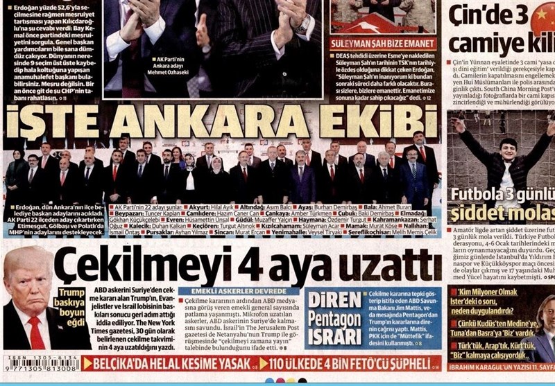 به گزارش گروه بین‌الملل خبرگزاری تسنیم، بسیاری از روزنامه‌های ترکیه، امروز در عکس و تیتر صفحه نخست، معرفی نامزدهای آکپارتی در آنکارا را برجسته کرده‌اند. همچنین این روزنامه‌ها موضوعات دیگری مانند وعده مبارزه نیروهای مسلح ترکیه در برابر داعش را مورد توجه قرار دادند.