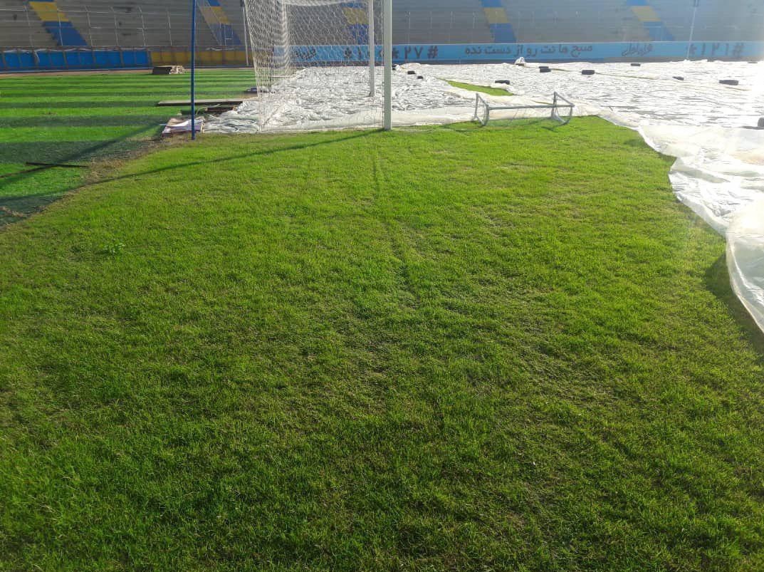 آغاز عملیات ترمیم چمن ورزشگاه تختی جم + تصاویر