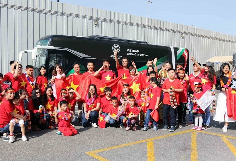 اعضای تیم ملی فوتبال ویتنام هنگام ورود به شهر ابوظبی با استقبال پرشور هواداران خود در امارات مواجه شدند. پیش از این تیم‌های گروه D جام ملت‌های آسیا شامل یمن، ایران و عراق وارد امارات شده بودند.