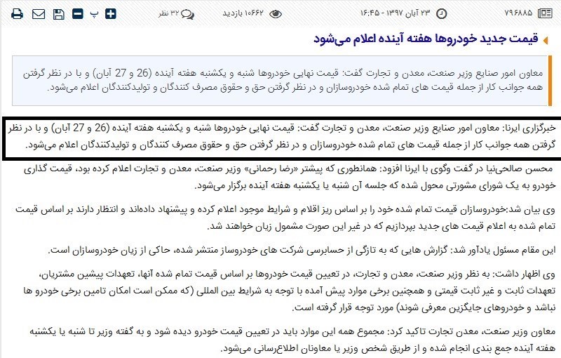در ادامه این مطلب بخشی از اظهار نظر وزیر صنعت و مسئولین وزارت صنعت را در مورد قیمت های جدید خودرو مشاهده می‌کنید.