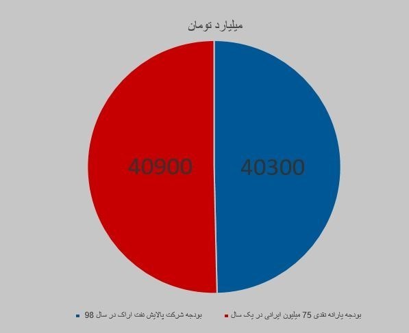 جالب است بدانید در لایحه بودجه 98 کل کشور، فقط یک شرکت دولتی به نام شرکت پالایش نفت اراک بیش از 40 هزار میلیارد تومان بودجه دارد که یک دهم کل بودجه عمومی دولت است. جالب تر اینکه بودجه این پالایشگاه دولتی برابر کل یارانه نقدی است که 75 میلیون ایرانی در یک سال از دولت می گیرند.