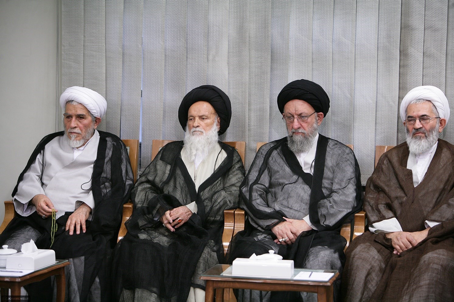 از چپ: آیتالله شریعتی، مرحوم ملکحسینی، آیتالله نورمفیدی و آیتالله معلمی در دیدار اعضای خبرگان با رهبر انقلاب