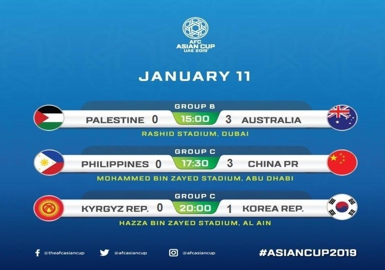 به گزارش خبرگزاری تسنیم، روز هفتم از مرحله گروهی مسابقات فوتبال جام ملتهای آسیا 2019 - امارات امروز (جمعه) با انجام دو دیدار از گروه C و یک دیدار از گروه B به پایان رسید.