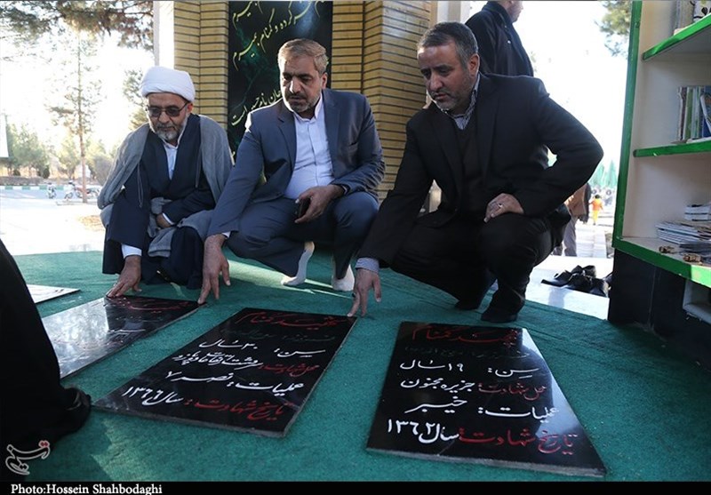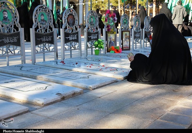 ‌غبارروبی مزار شهدای مدافع حرم حضرت زینب(س) در قم با حضور خبرنگاران