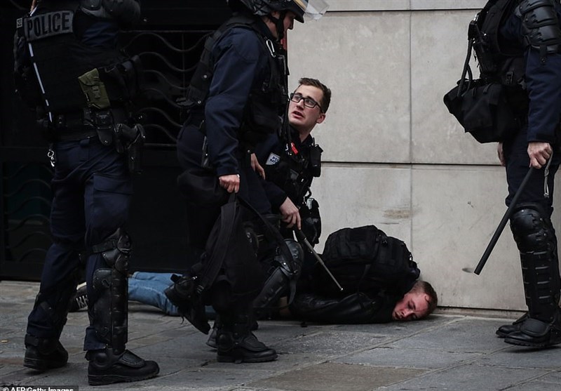 پلیس همچنین سعی کرد با کمک گاز اشک آور و ماشین های آبپاش هزاران تظاهرات کننده در شهرهای مختلف فرانسه را متفرق کند.