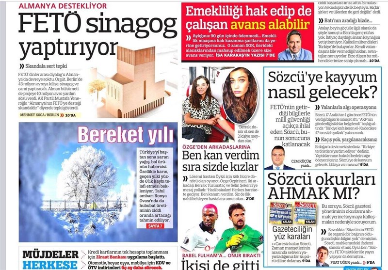 به گزارش گروه بینالملل خبرگزاری تسنیم، بسیاری از روزنامههای ترکیه، امروز در عکس و تیتر صفحه نخست، سخنرانی اردوغان در مورد خودکفایی اقتصادی و دفاعی و فرا رسیدن سالگرد مرگ رئوف دنکتاش رهبر سابق قبرس شمالی را برجسته کردهاند.
