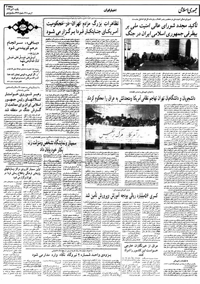 چند روز بعد از نظر قطعی شورای عالی امنیت ملی و تأکید بر بیطرفی ایران، آیتالله خامنهای در سخنانی با انتقاد از مواضع عدهای که میگویند باید بهکمک صدام رفت، فرمودند "ما هرگز بهنفع چپ، با راست دشمنی پیدا نمیکردیم. بهنفع راست هم با چپ دشمنی پیدا نمیکردیم. دو اردوگاه و دو جناحند که بهخاطر اهداف غلط و غیرالهی و نامقدس ــ از نظر ما و از نظر همهٔ انسانهای واقعبین ــ با هم میجنگند. جمهوری اسلامی، هر دو جناح را رد میکند؛ چون در هر دو طرف، انگیزهها مادی است و به همین دلیل هم با یکدیگر تعارض پیدا کردهاند. آنها بهدلیل مادی بودن، با هم تعارض پیدا کردهاند. اینطور نیست که یکی الهی و یکی هم مادی است. جنگ اسلام و کفر نیست. این، موضع ملت ایران ماست".