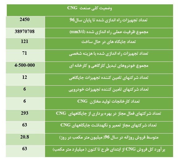 پس از آن در سال 1383 اولین قرارداد تأمین تجهیزات و نصب و راه اندازی جایگاه های سی ان جی با سه شرکت داخلی منعقد شد. سپس در سال 1384 اولین کارخانه تولید مخزن سی ان جی راه اندازی شده و در سال 1385 قراردادهای توسعه ای به منظور افزایش جایگاه های سی ان جی و خودروهای دوگانه سوز امضا شد. روند صنعت سی ان جی تا جایی ادامه پیدا کرده است که هم اکنون 2450 جایگاه عرضه سی ان جی، 4.5 میلیون خودروی دوگانه سوز، 12 شرکت تأمین کننده تجهیزات جایگاهی، 6 شرکت تأمین کننده تجهیزات خودرویی، 6 شرکت تولید مخازن سی ان جی، 293 شرکت بهره بردار جایگاه و 63 شرکت تعمیر و نگهداشت جایگاه در کشور موجود است (جدول زیر وضعیت کلی صنعت CNG در ایران را نشان می دهد).