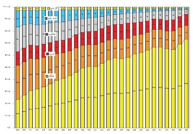 همانطور که مصرف گاز طبیعی در دنیا طی 20 سال اخیر بیش از 45% رشد داشته است، مصرف آن در ایران نیز طی 20 سال اخیر بیش از 60% افزایش یافته است. بخشی از این افزایش صرف پاسخگویی به تقاضای جدید شده اما بخش قابل توجهی از مصارف گاز طبیعی جایگزین فرآورد های نفتی شده است. شکل زیر تغییرات سهم گاز و فرآورد های نفتی در تأمین بخش تقاضای انرژی ایران را نمایش می دهد.
