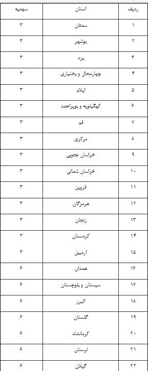 حصیری سهمیه استانها را به شرح زیر اعلام کرد: