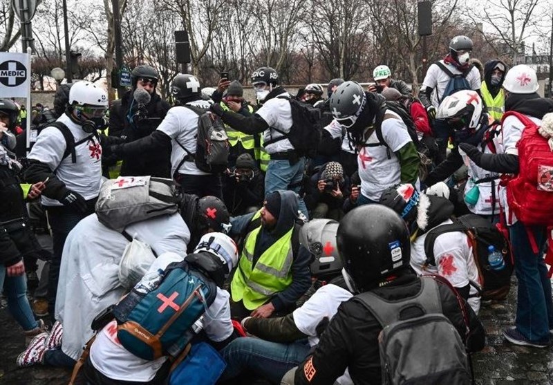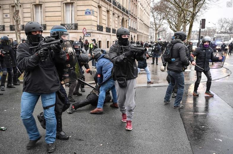 در پاریس هزاران نفر با پلاکاردهایی که روی آنها نوشته شده بود ماکرون باید استعفا کند و خشونت پلیس را محکوم کرده بودند در هوای بسیار سرد راهپیمایی کردند.