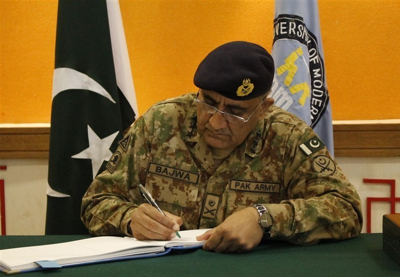 ژنرال قمر باجوه در سال گذشته احکام اعدام 13 نفر از سرکردگان اعضای وابسته به شبکههای تروریستی تحریک طالبان پاکستان را امضا کرد. این عمل فرمانده ارتش به صورت جدی میتواند بهعنوان گام مؤثر بر حسن اجرای قوانین مطرح شود که بیانگر ادای مسئولیت و انجام وظایف قانونی ارتش این کشور بهحساب می رود.